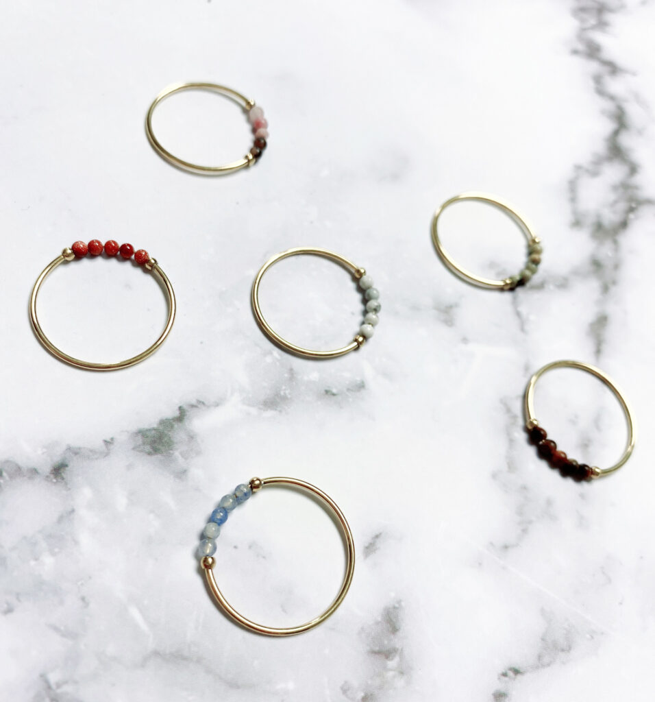 Deze anti-stress ringen van Charmin's kunnen werken op 2 niveaus; ten eerste kan je de steentjes draaien voor ontspanning en rust.