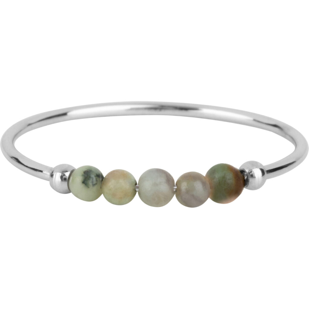 Stalen Fidget ring “Charmin’s Anxiety Ring NaturalStones Afrikaans Turkoois Beads Staal R1306” van het fashion sieradenmerk Charmin’s. Ring van 1mm versierd met 5 draaiende halfedelstenen kraaltjes.