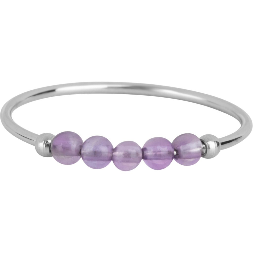 Stalen Fidget ring “Charmin’s Anxiety Ring NaturalStones Amethist Beads Staal R1313” van het fashion sieradenmerk Charmin’s. Ring van 1mm versierd met 5 draaiende halfedelstenen kraaltjes.