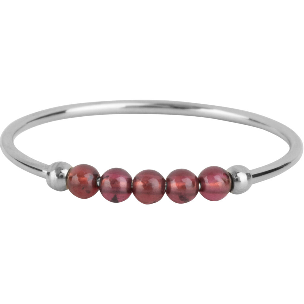Stalen Fidget ring “Charmin’s Anxiety Ring NaturalStones Amethist Beads Staal R1313” van het fashion sieradenmerk Charmin’s. Ring van 1mm versierd met 5 draaiende halfedelstenen kraaltjes.