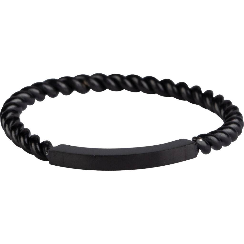 Stalen statement ring “R1032 Gedraaid met een Plaatje Black” van het fashion sieradenmerk Charmin’s.