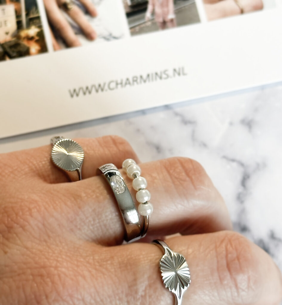 Deze classy Charmin’s anxiety stress ring is gemaakt van chirurgisch staal. De ring heeft 5 parel balletjes die rondom de hele ring draaien. De ring is 1mm dik en de balletjes 4 bij 3mm.