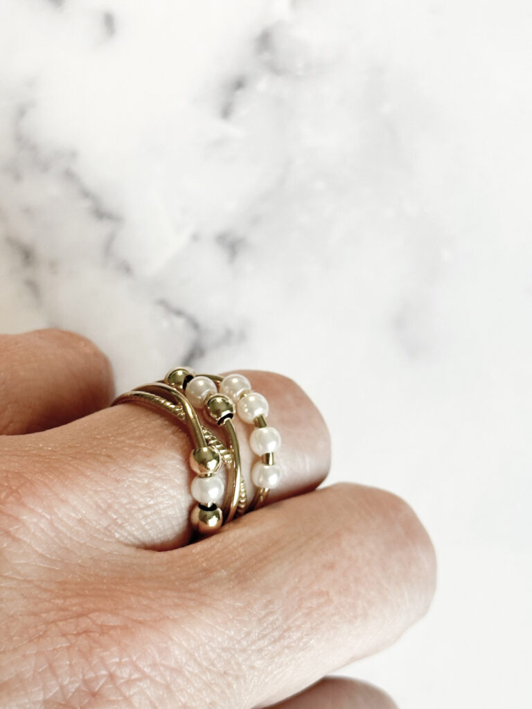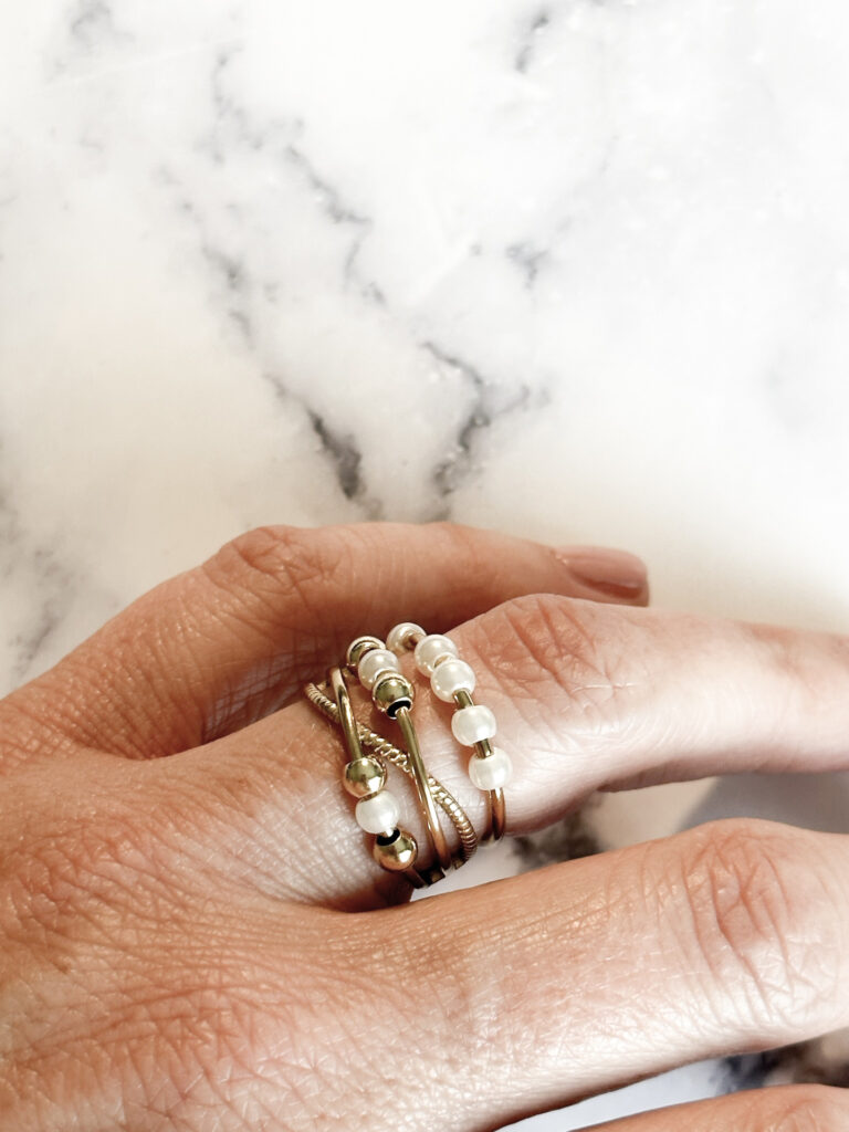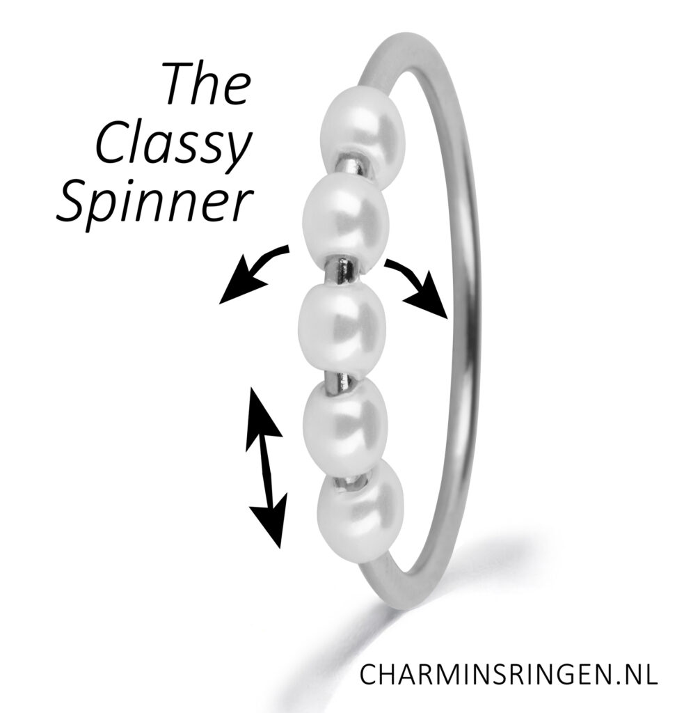 De balletjes kan je draaien en rondom bewegen om zo rustiger en ontspannen te worden en de ring toont met de parelkraaltjes ook nog eens chique!