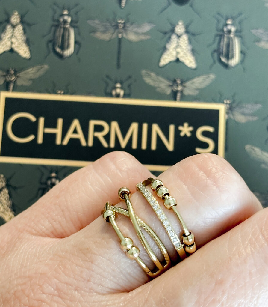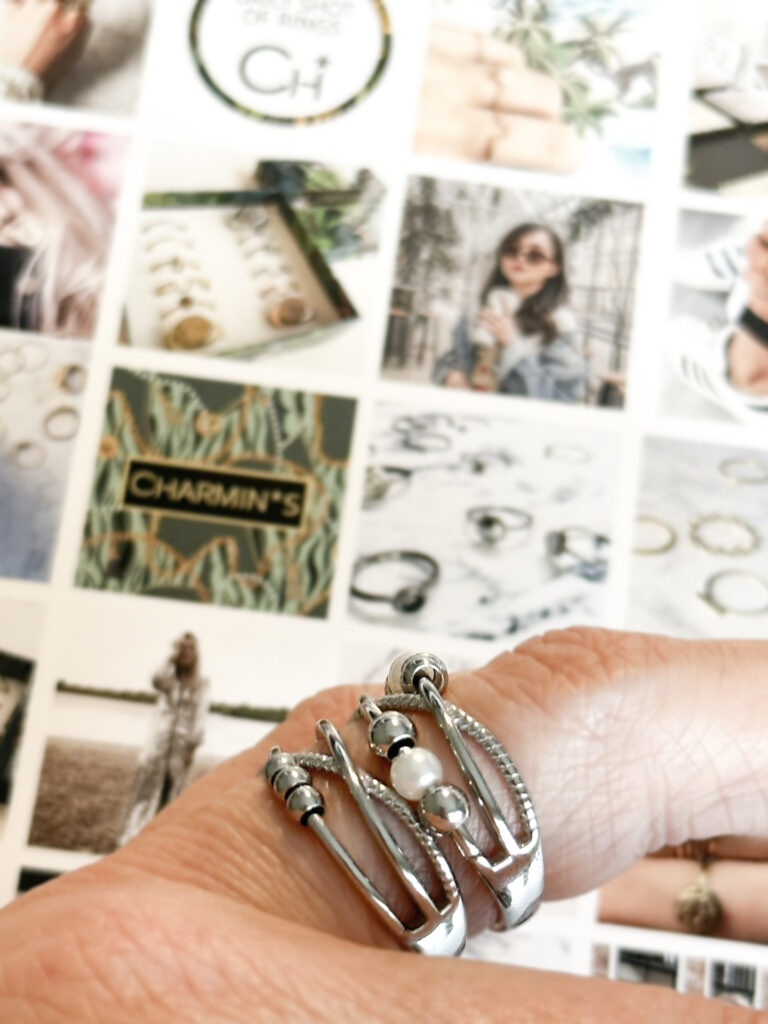 Deze moderne Charmin's ring, draagt heerlijk en heeft 6 balletjes die je kan bewegen.