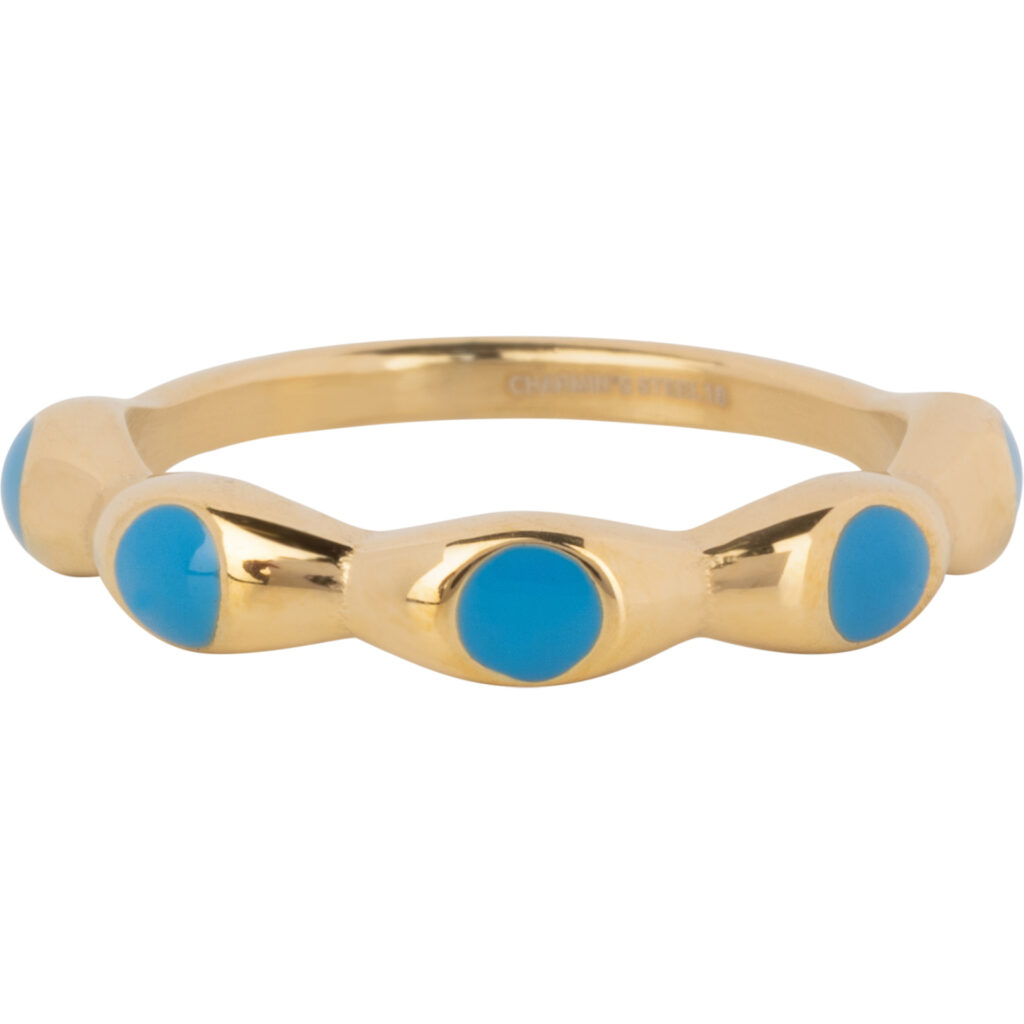 Stalen stapelring “Charmin’s Goudkleurig Ring Met Blauwe Ronde Emaille Bollen Staal R1500” van het fashion sieradenmerk Charmin’s.