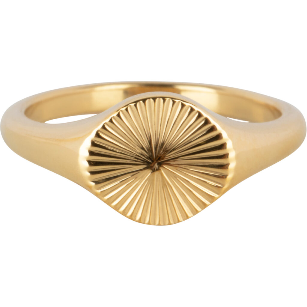 Stalen Vierkant-ovale Zegelring met prachtige gravure “Charmin’s Goudkleurig Zegelring Gravure Sterpatroon Rond Staal R1343” van het fashion sieradenmerk Charmin’s.