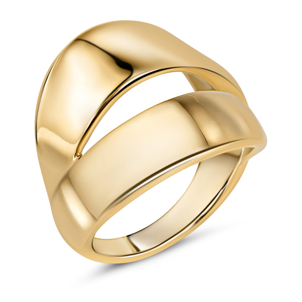 Een statement piece dat groots oogt, maar licht aanvoelt door het holle design dat de ring verrassend licht en comfortabel om te dragen maakt—perfect voor wie stijl en draagcomfort wil combineren.