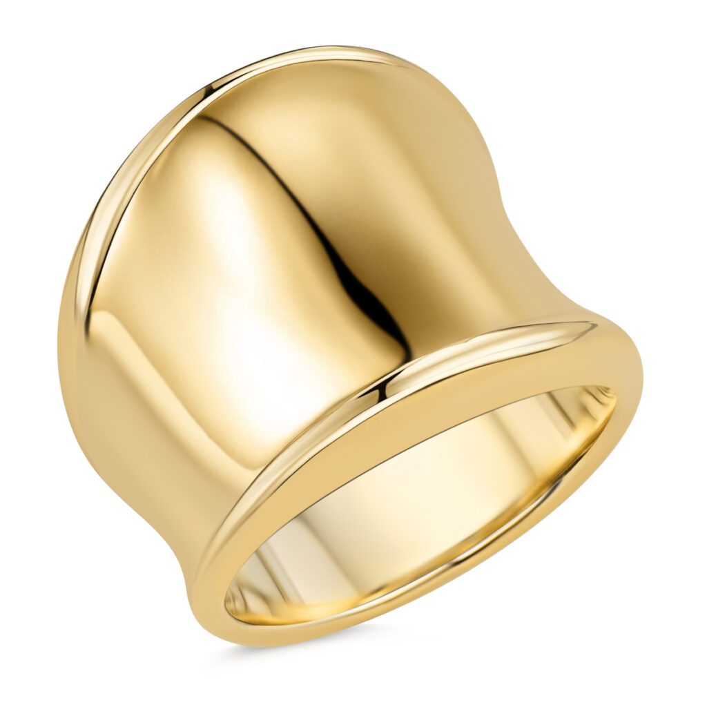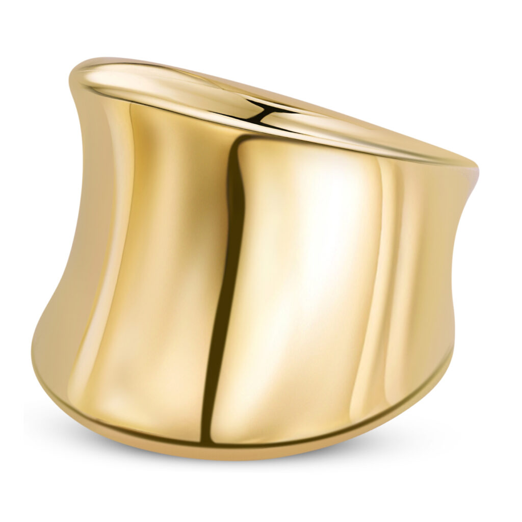 Het gladde, strakke design wordt versterkt door de subtiel oplopende randen, die de ring een zachte glooiing en moderne uitstraling geven.