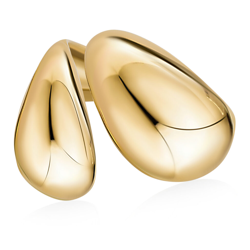 Deze opvallende “Charmin’s Goudkleurige Chunky Ring met Open Ovale Uiteinden Staal R1794” heeft twee ovalen die elkaar net niet raken, en je vinger omarmen.