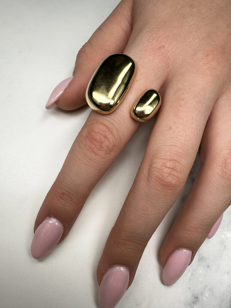 Het luchtige en minimalistische silhouet voelt licht en organisch aan – alsof de ring je vinger zachtjes omarmt. Gemaakt van sterk staal, blijft hij altijd in vorm en zit nooit strak.