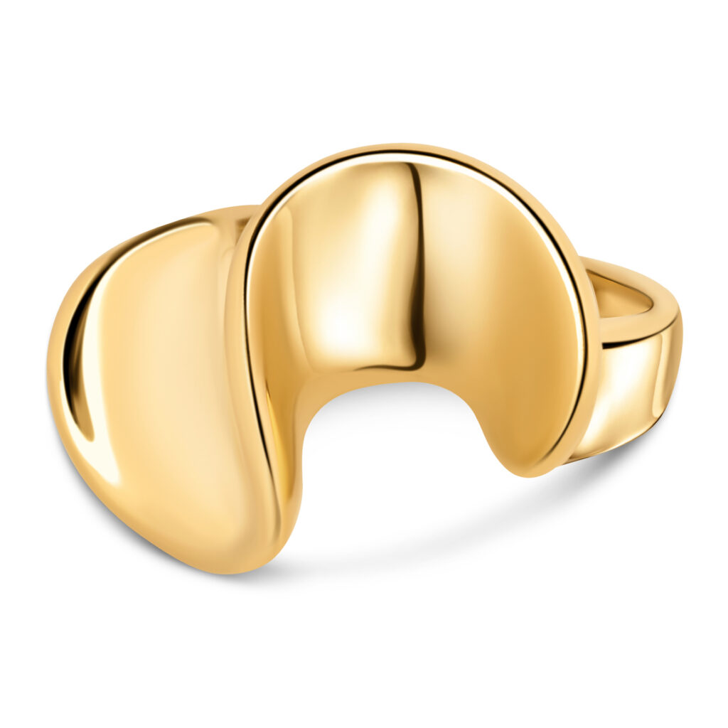 De vloeiende, gedraaide vorm geeft de ring een speelse, kunstzinnige uitstraling – een statement piece voor wie durft op te vallen.