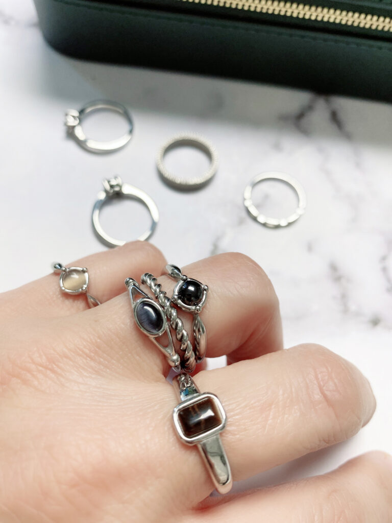 En waarom probeer je niet twee ringen met een andere ertussen voor wat extra flair?