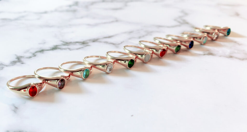 Onze Charmin's Birthstones ringen bestaan uit twaalf unieke en kleurrijke ringen met geboortestenen.