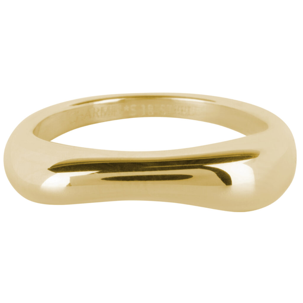 Stalen minimalistische stapelring “Charmin’s Goudkleurige Ring Zacht Gewelfd en Afgeronde Bollen Staal R1371” Van het sieradenmerk Charmin’s.
