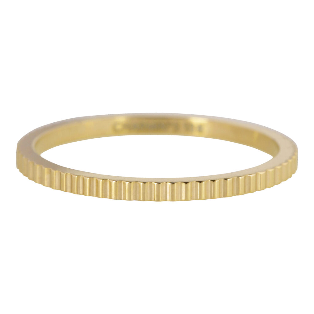 Wat een fijne ring Charmin's ring om te dragen; gemakkelijk te combineren en toch ook speciaal op zichzelf. Deze ring is 1,5*1,5mm en komt ook in de kleuren staal, rose en zwart.