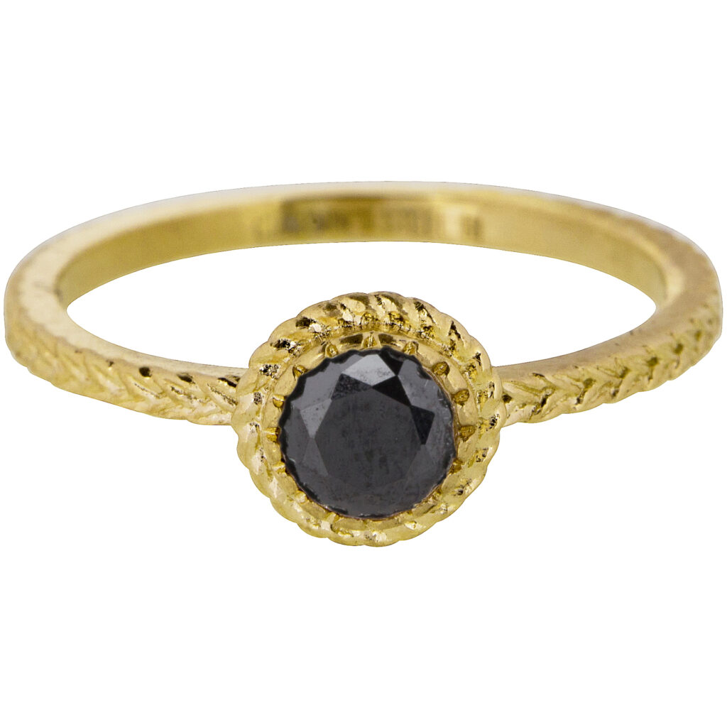 Hebbe, hebbe, hebbe, deze super mooie Charmin's ring met vintage look. Deze ring heeft een mooi zwart glimmend steentje en tovert je zo naar de vorige eeuw. De ring zelf heeft een afmeting van 1,5*1,5mm, de top heeft een diameter van 5mm, versierd met een zwarte zirkonia.