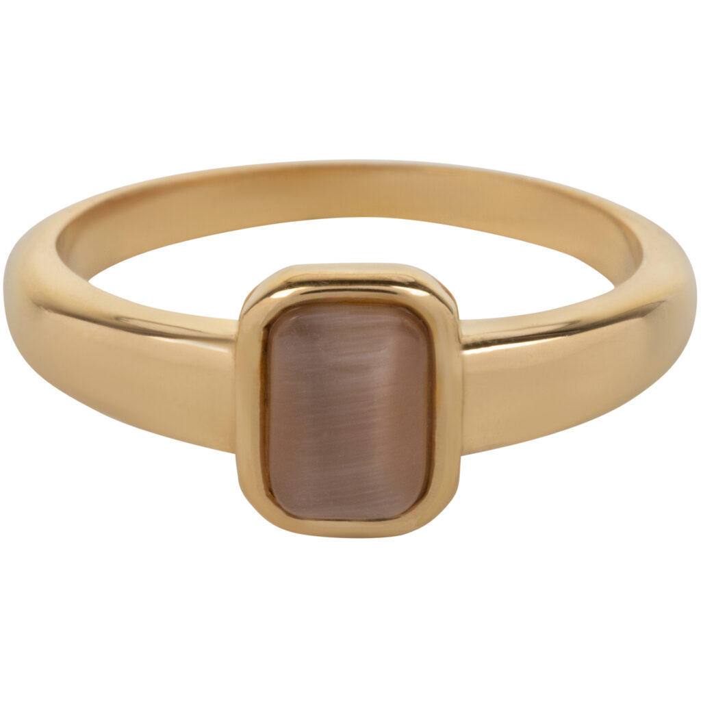 Stalen klassieke zegelring “Charmin’s Goudkleurige Zegelring Bruine Cateye Steen Rechthoek Staal R11766” van het fashion sieradenmerk Charmin’s.