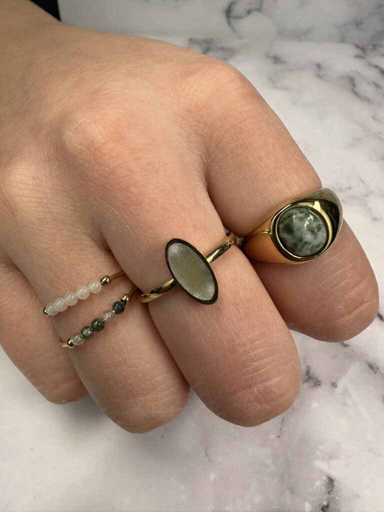 Onze Charmin's halfedelstenen ringen bestaan uit echte halfedelestenen. Dit betekend dat de kleur, vorm en grootte kan verschillen.