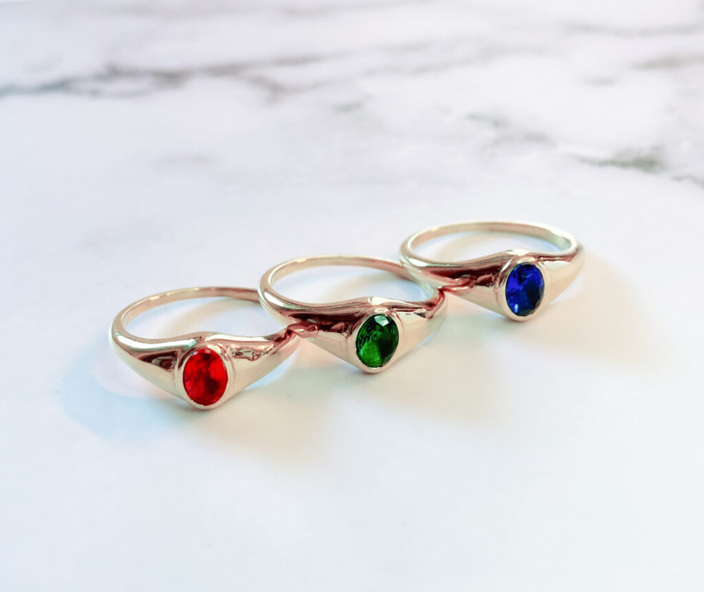 Onze Charmin's Birthstones ringen bestaan uit twaalf unieke en kleurrijke ringen met geboortestenen.