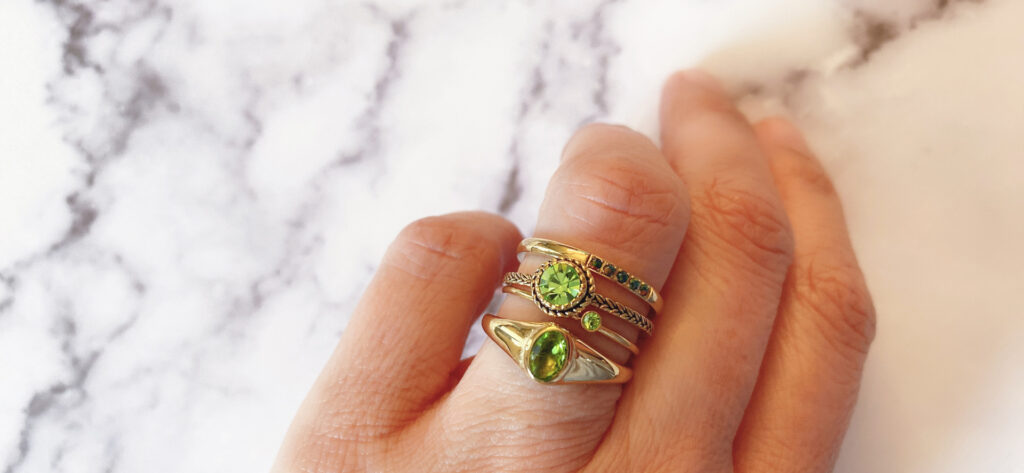 De edelstenen die horen bij de geboortes in augustus zijn de peridot, hier passen de kleuren groen bij.