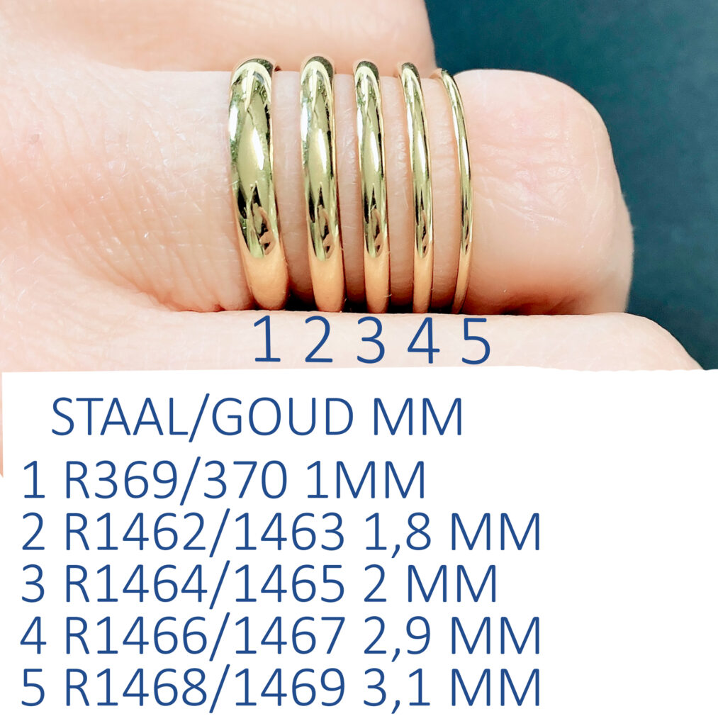 De ring heeft een diameter van 1mm en komt ook in de kleuren rose, goud en zwart.