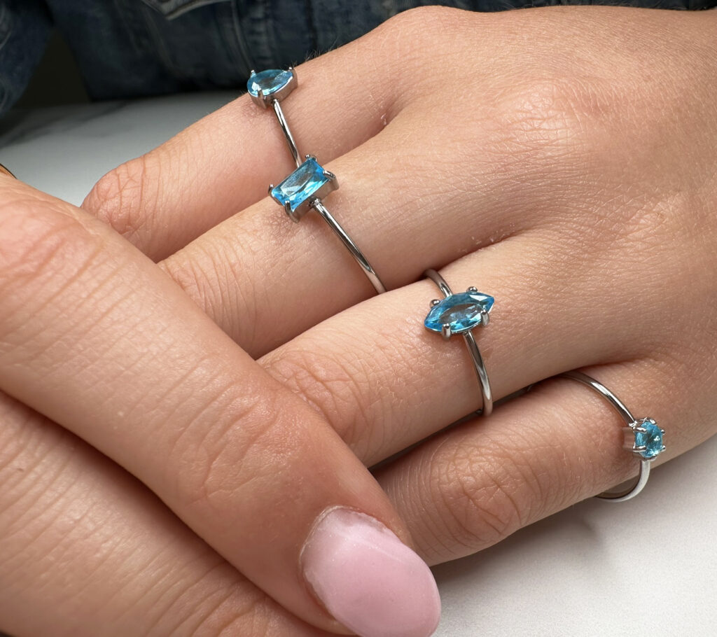 Stalen ring “Charmin’s Stalen Ring Rechthoekig Lichtblauw Steentje R1719 – IJzige Glans” van het fashion sieradenmerk Charmin’s.