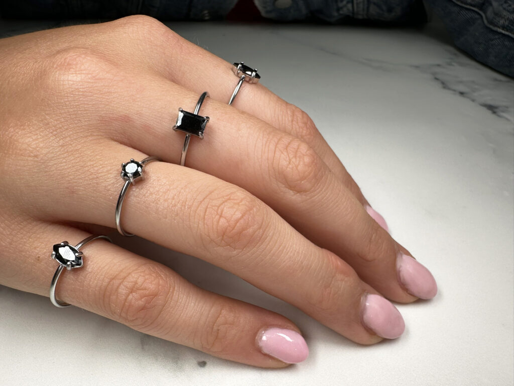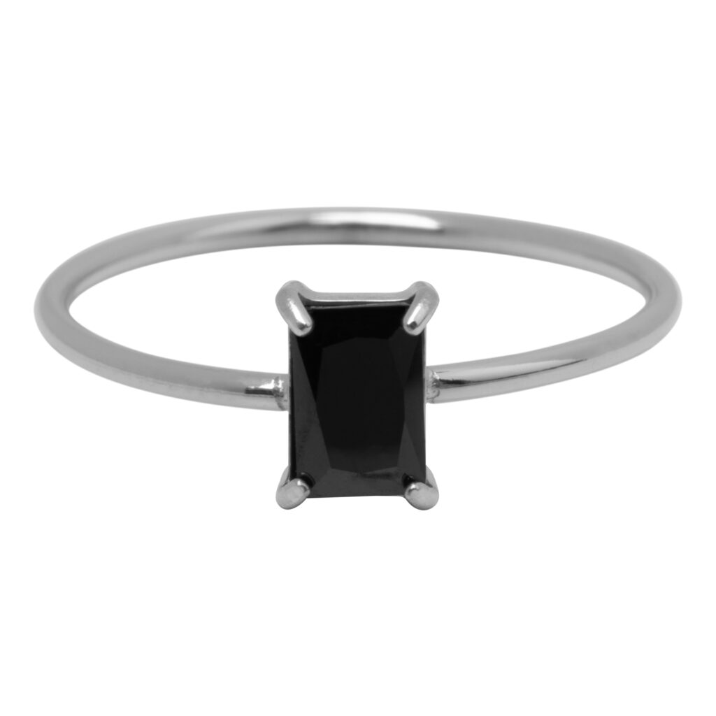 Stalen ring “Charmin’s Stalen Ring Rechthoekig Zwart Steentje R1722 – Strakke Stijl” van het fashion sieradenmerk Charmin’s.