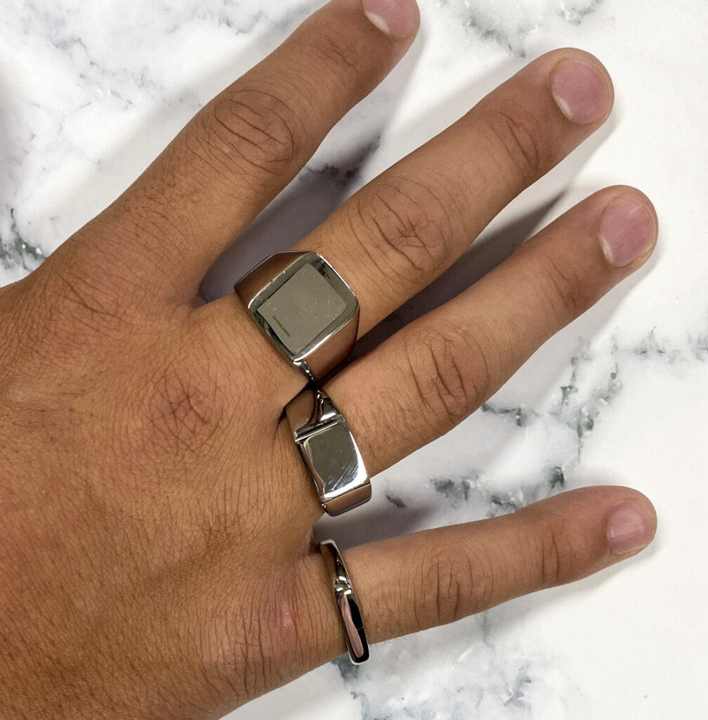Stoere grote maat zegelring voor heren en dames “Charmin’s UNI Heren Zegelring Langwerpig Staal R965” van hét ringen merk Charmin’s.