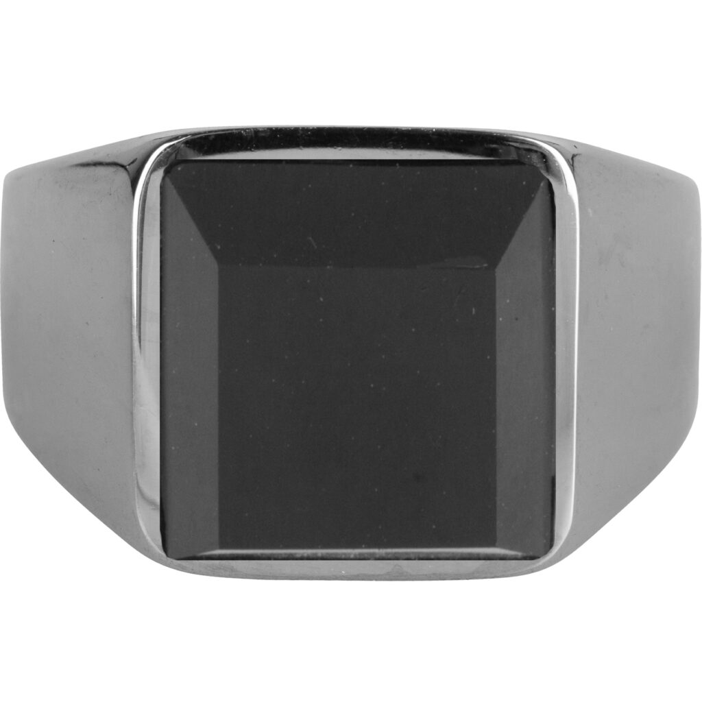 Klassieke zegelring met zwarte steen waarvan de randen mooi geslepen zijn.
