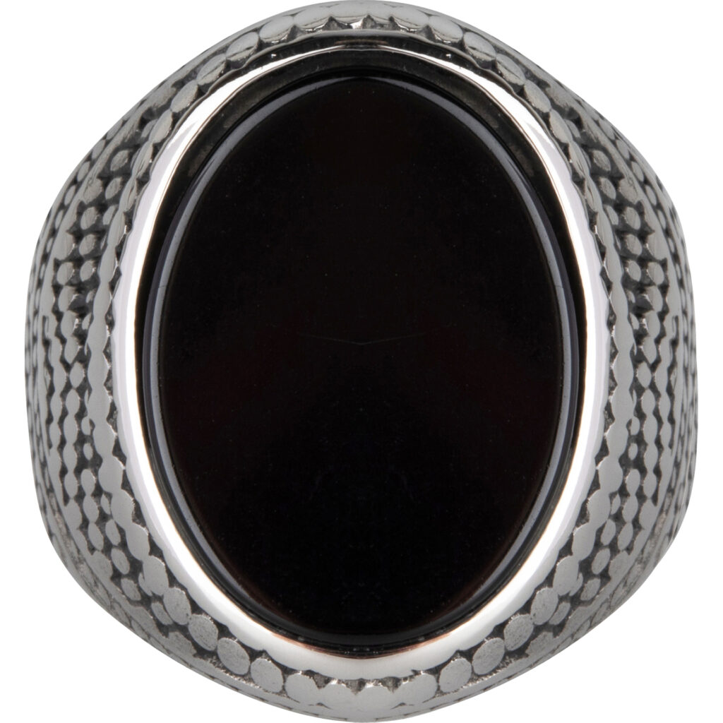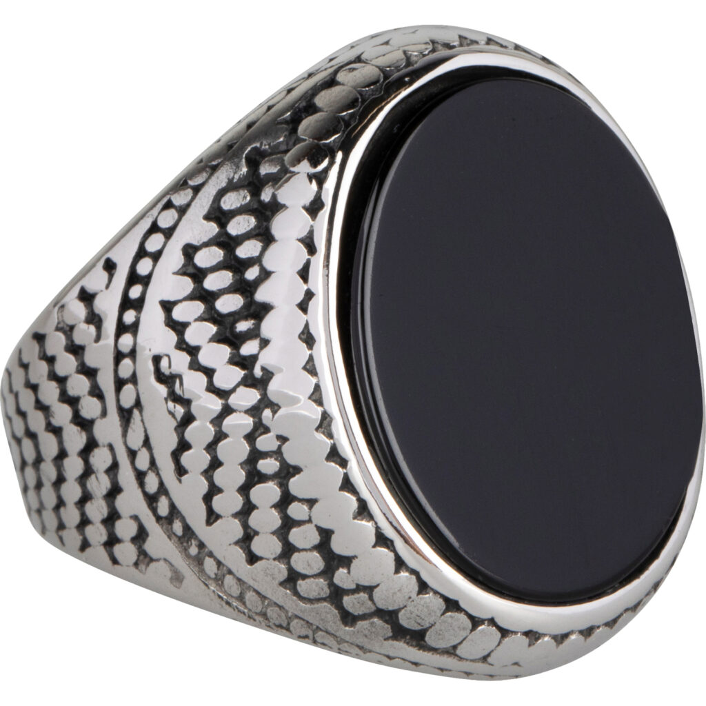 Dit is echt een opvallende zegelring, mega groot en met een prachtige zwarte plat geslepen zwarte steen.