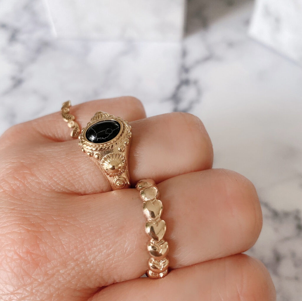 Zie je al voor je hoe powervrouw Cleopatra deze ring droeg?! Wij wel. Voor dit ontwerp was zij dan ook onze inspiratie. De ring is rijk versierd en heeft een ovale steen in het midden. Een prachtige ring die aan elke vinger gedragen kan worden.