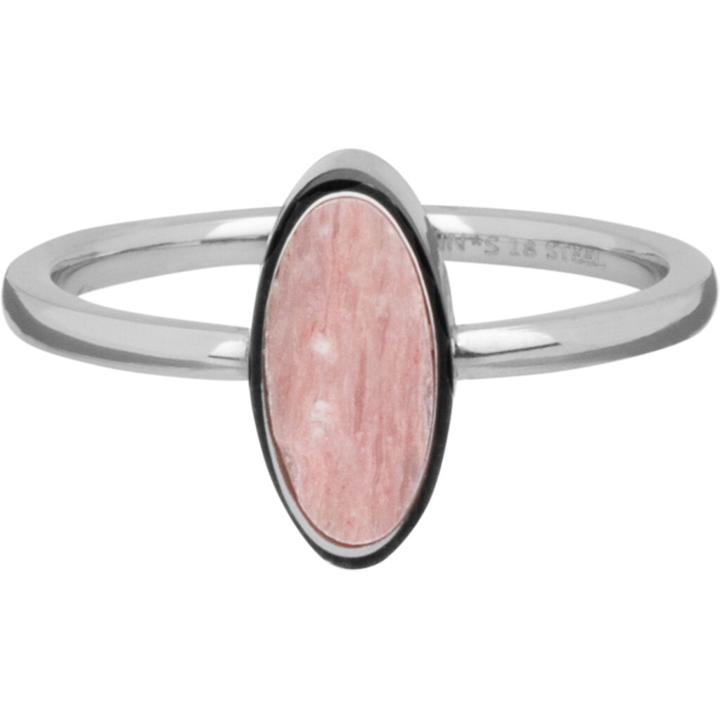 Stalen statement ring “Charmin’s Zegelring met Ovale Roze Rhodoniet Edelsteen R1283” van het fashion sieradenmerk Charmin’s.