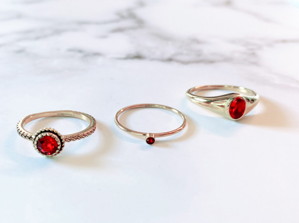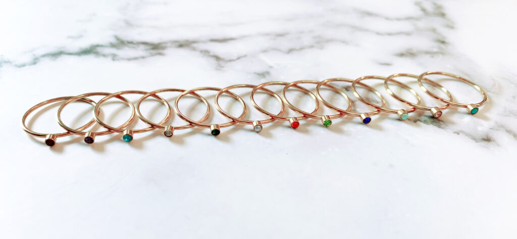 Onze Charmin's Birthstones ringen bestaan uit twaalf unieke en kleurrijke ringen met geboortestenen.