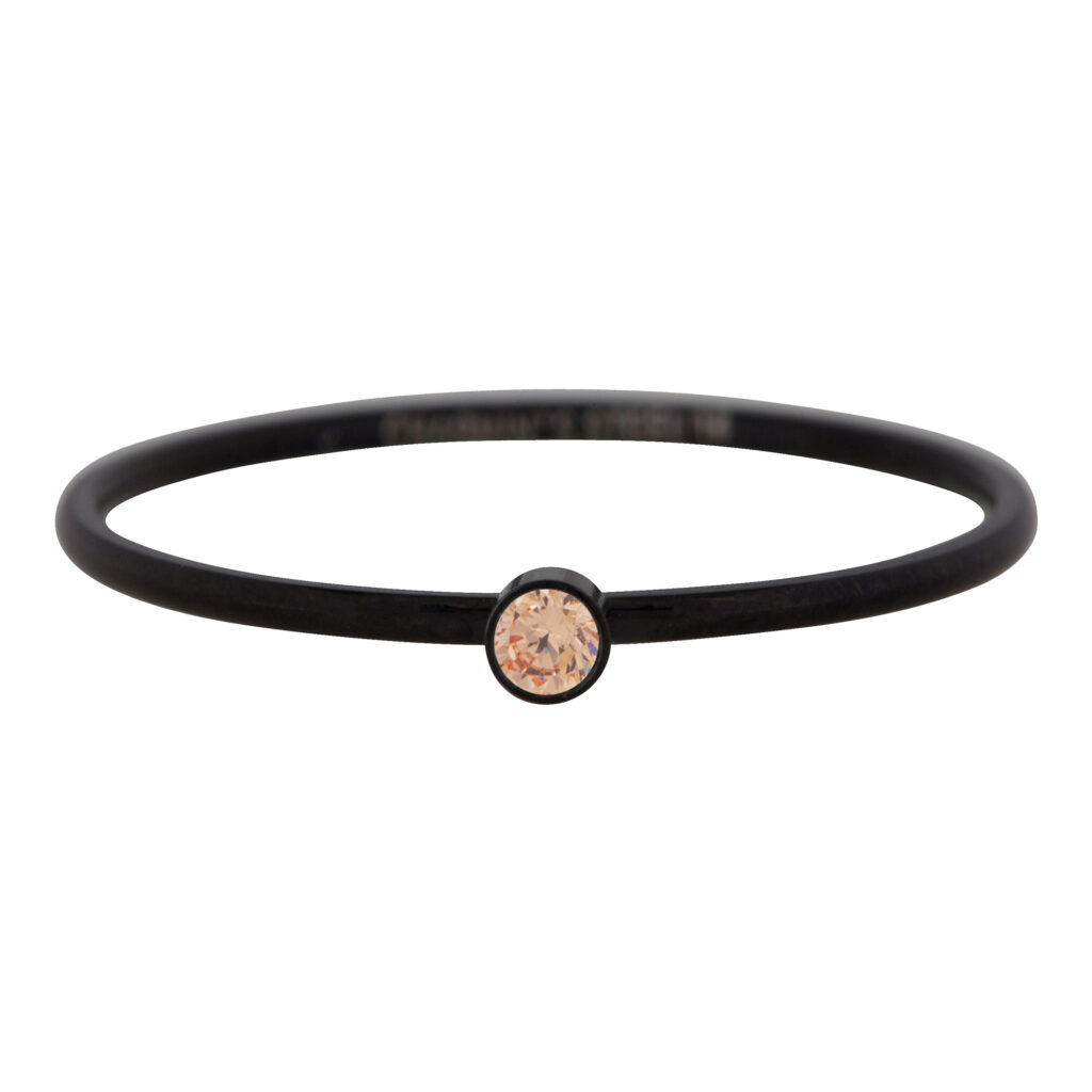 Stalen stapelring R499 Shine Bright 2.0 Black Steel with peach crystal van het fashion sieradenmerk Charmin’s.