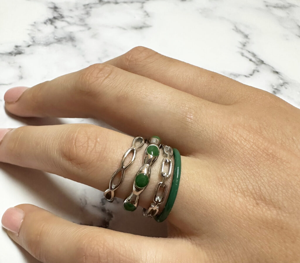 De Charmin’s Donker Smaragd Groen Emaille Stapelring (R1615) is een veelzijdige en tijdloze keuze die zich perfect leent voor eindeloze combinaties.