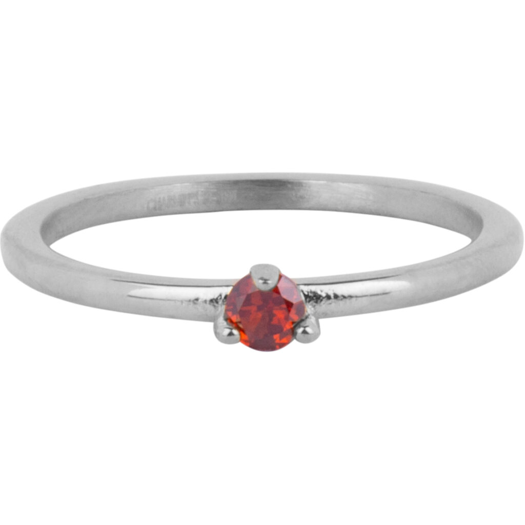 Stalen vintage klassieke ring “Charmin’s Driehoek Solitair Ring Rode Steen Staal R1300” van het fashion sieradenmerk Charmin’s met bijzonder driehoek zetting.