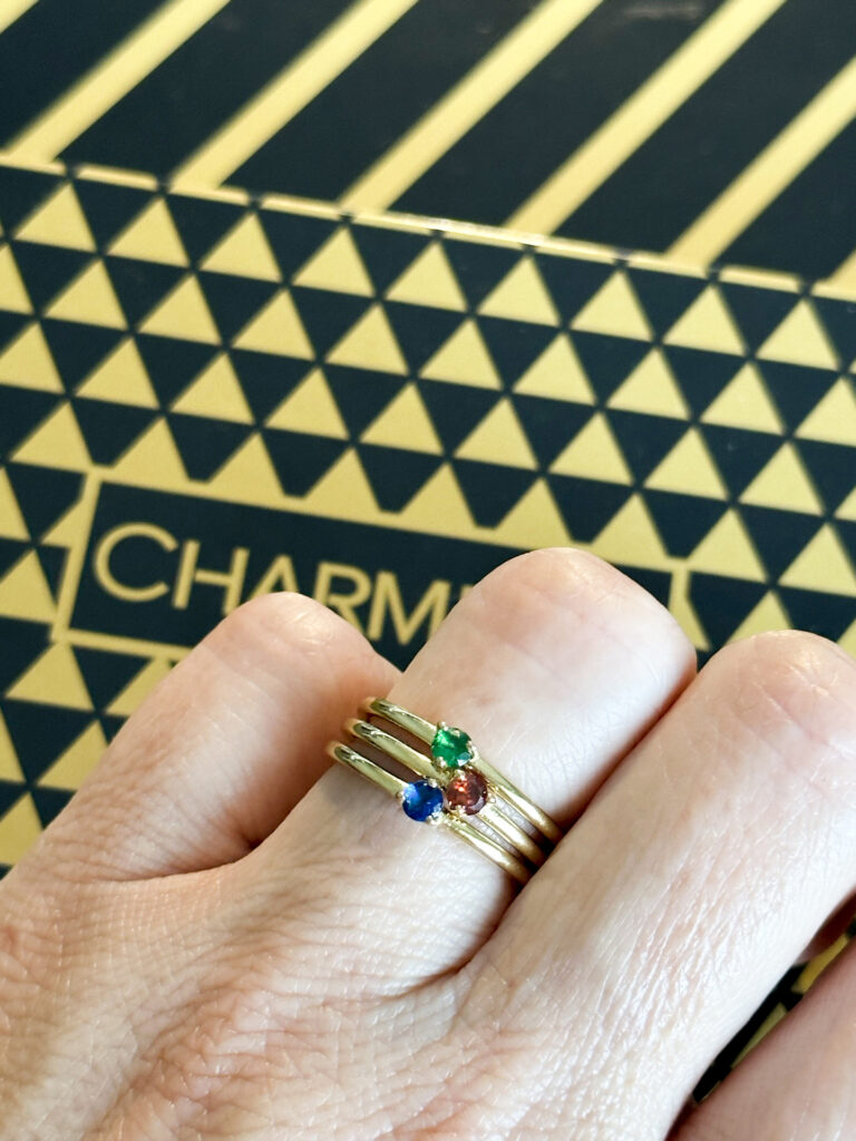 Wat een mooie klassieke kleuren hebben deze ringen: smaragd groen, robijn rood en saffier blauw. Deze drie kleuren zijn in sieraden een klassieke 3 eenheid en dan ook zowel prachtig samen als los.