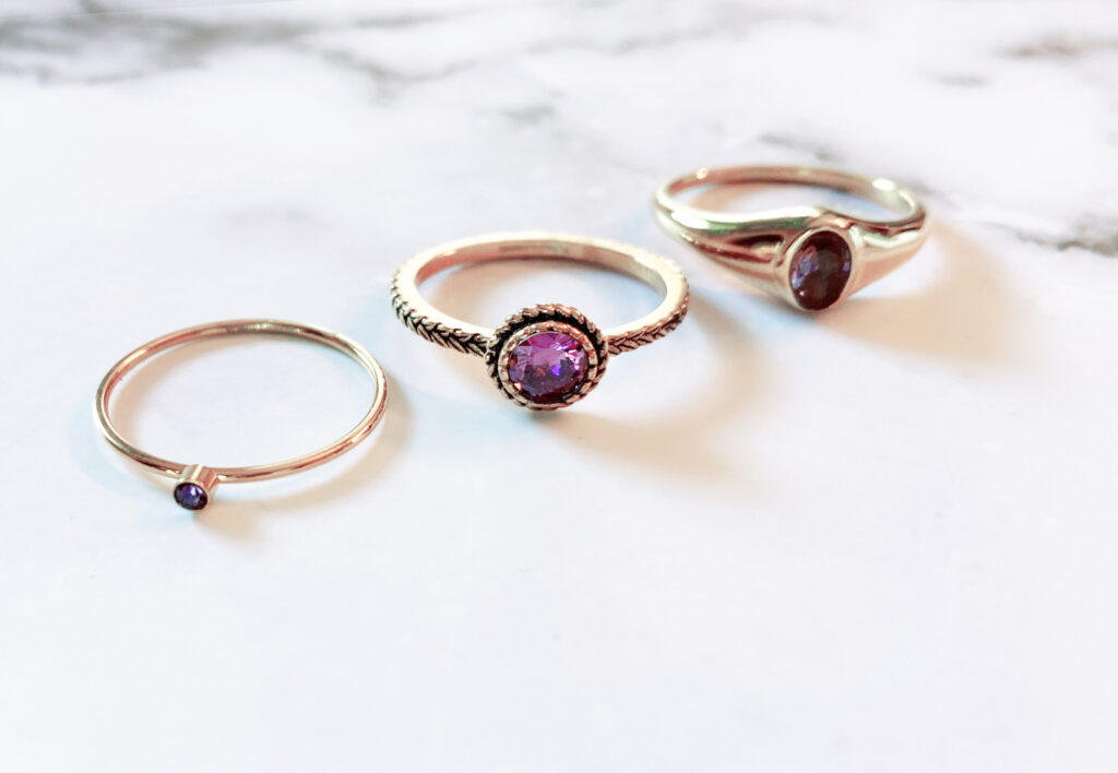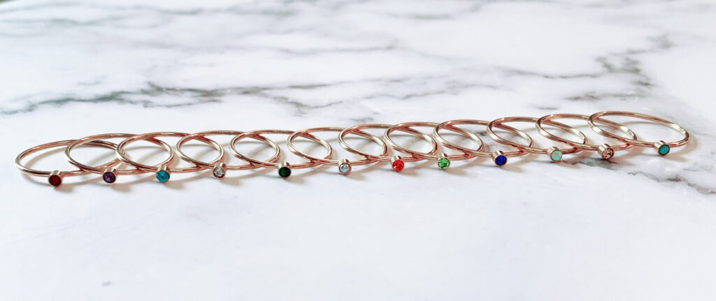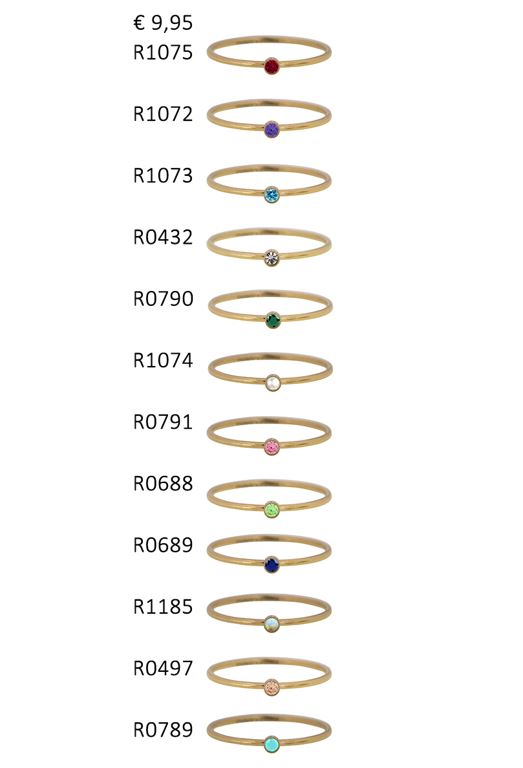 Onze Charmin’s Birthstones ringen bestaan uit twaalf unieke en kleurrijke ringen met geboortestenen.