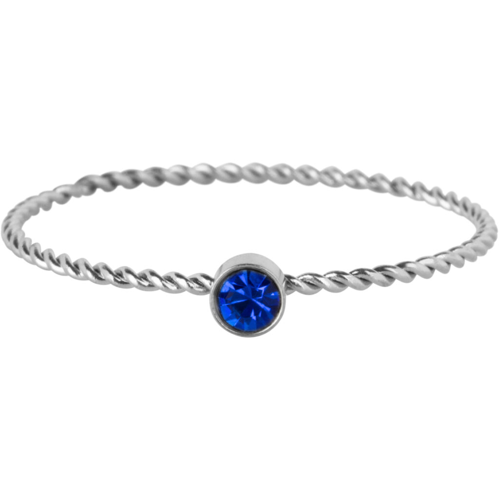 Stalen stapelring “Charmin’s Gedraaide Birthstone Ring Donker Blauw Kristal Staal R1444” van het fashion sieradenmerk Charmin’s. Maat 18 valt iets groter uit.