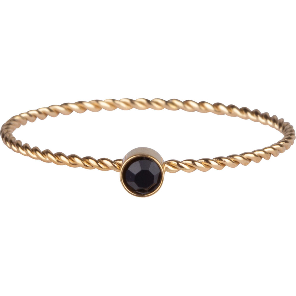 Stalen stapelring “Charmin’s Goudkleurig Gedraaide Birthstone Ring Zwarte Cristal R949” van het fashion sieradenmerk Charmin’s.