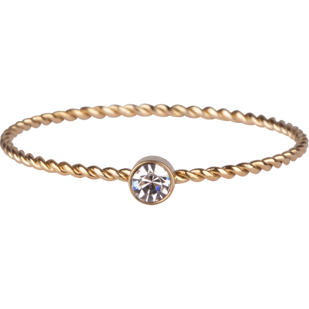 Stalen stapelring “R945 Shine Bright Twisted Gold and white crystal” van het fashion sieradenmerk Charmin’s. Maat 18 valt iets groter uit.