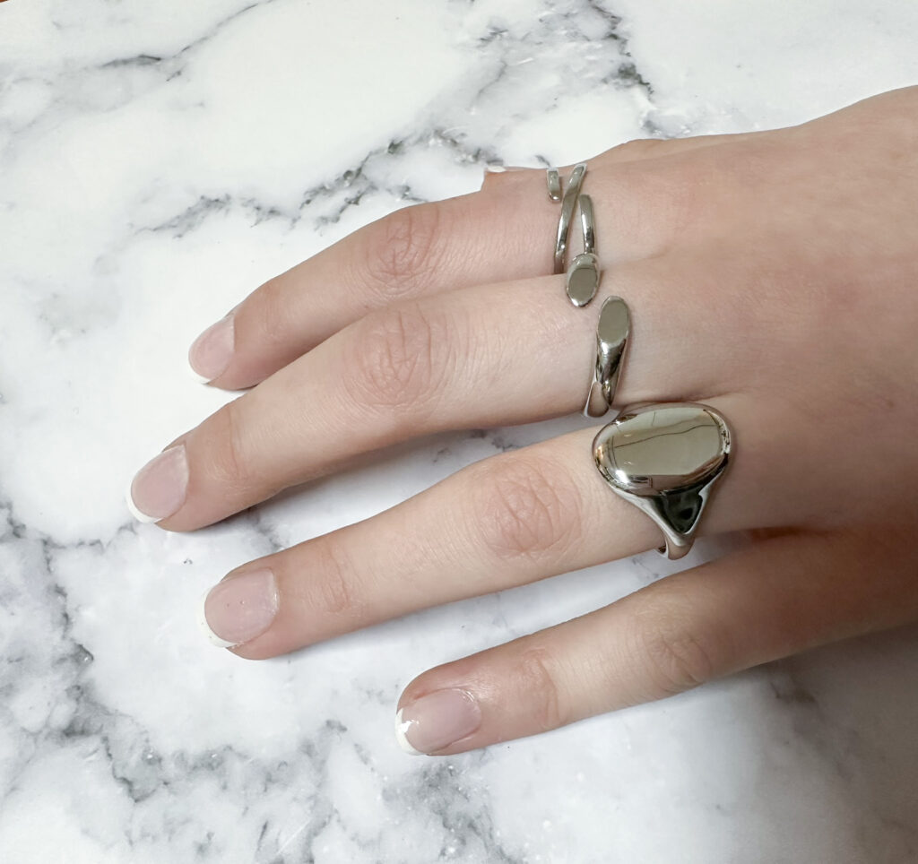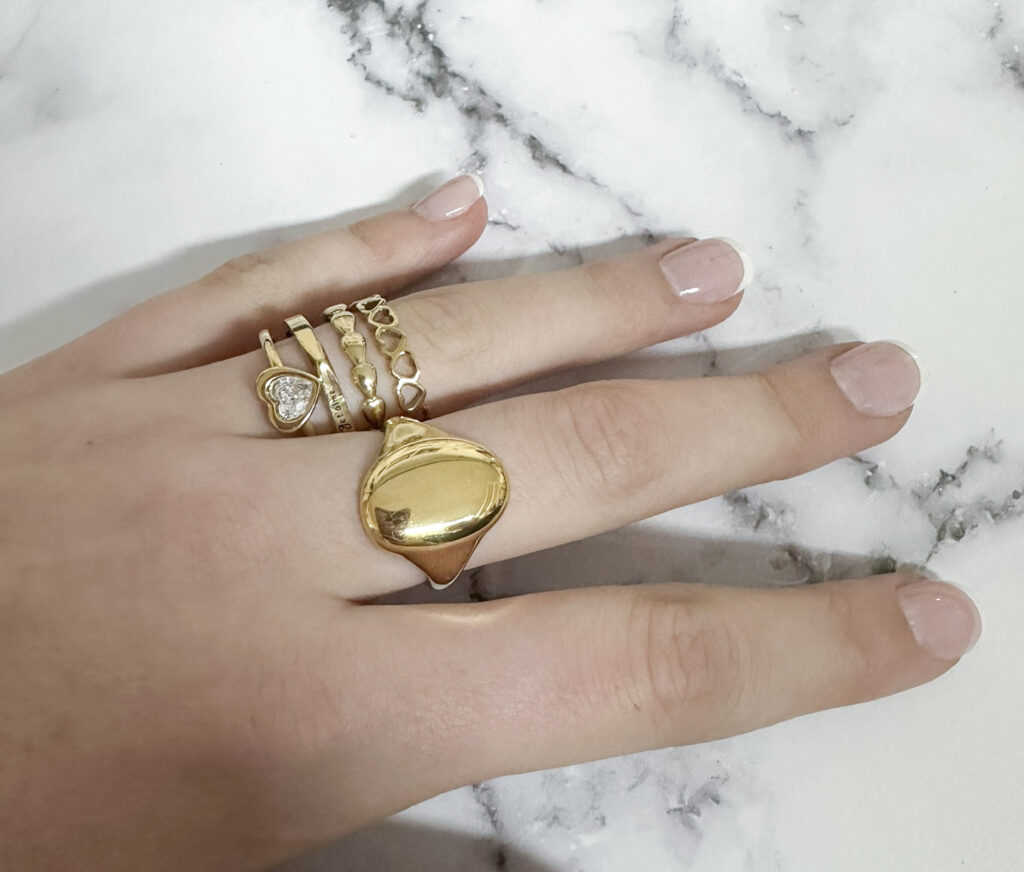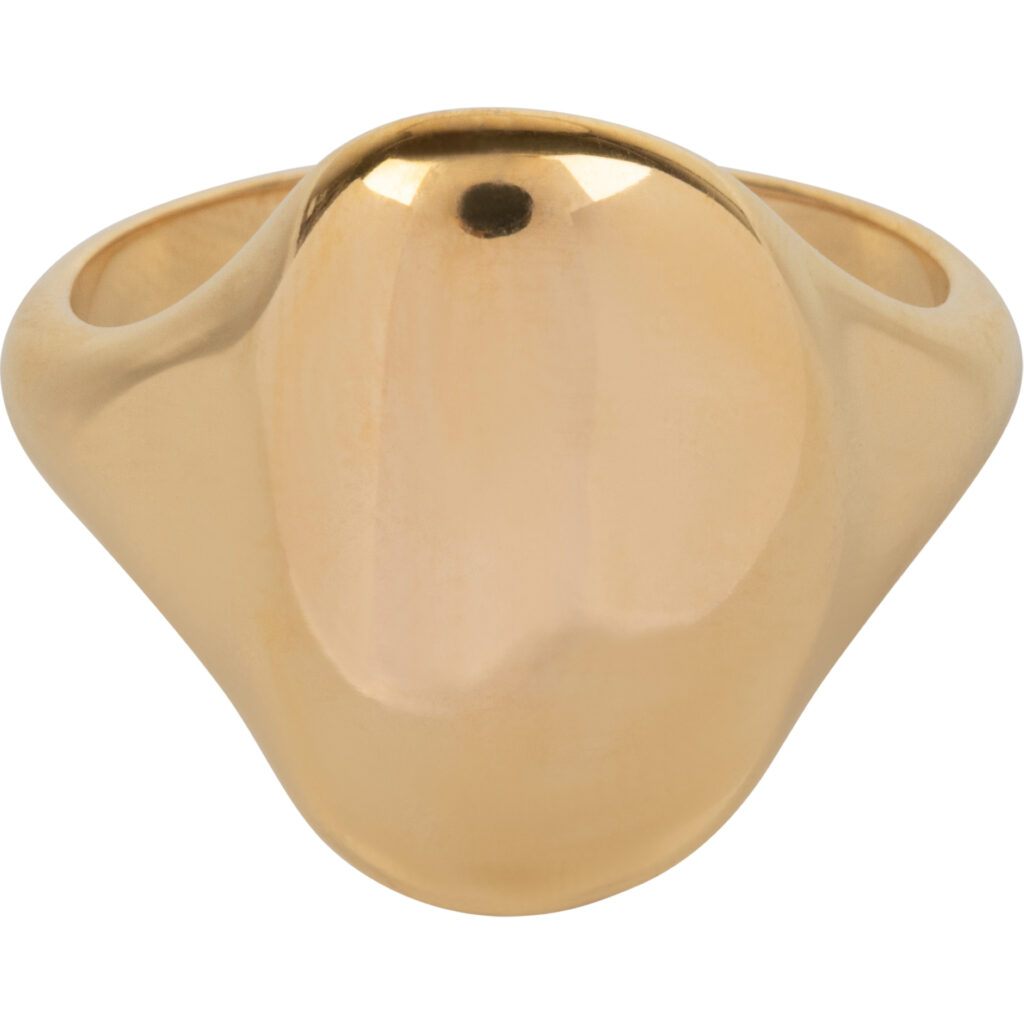 Wat een prachtige statementring! Deze grote zegelring heeft een organische vorm en is hol van binnen, waardoor hij niet alleen een opvallende look heeft, maar ook heerlijk licht draagt. De smalle achterkant zorgt voor extra draagcomfort. Perfect om solo te dragen of te combineren met andere ringen voor een trendy look.