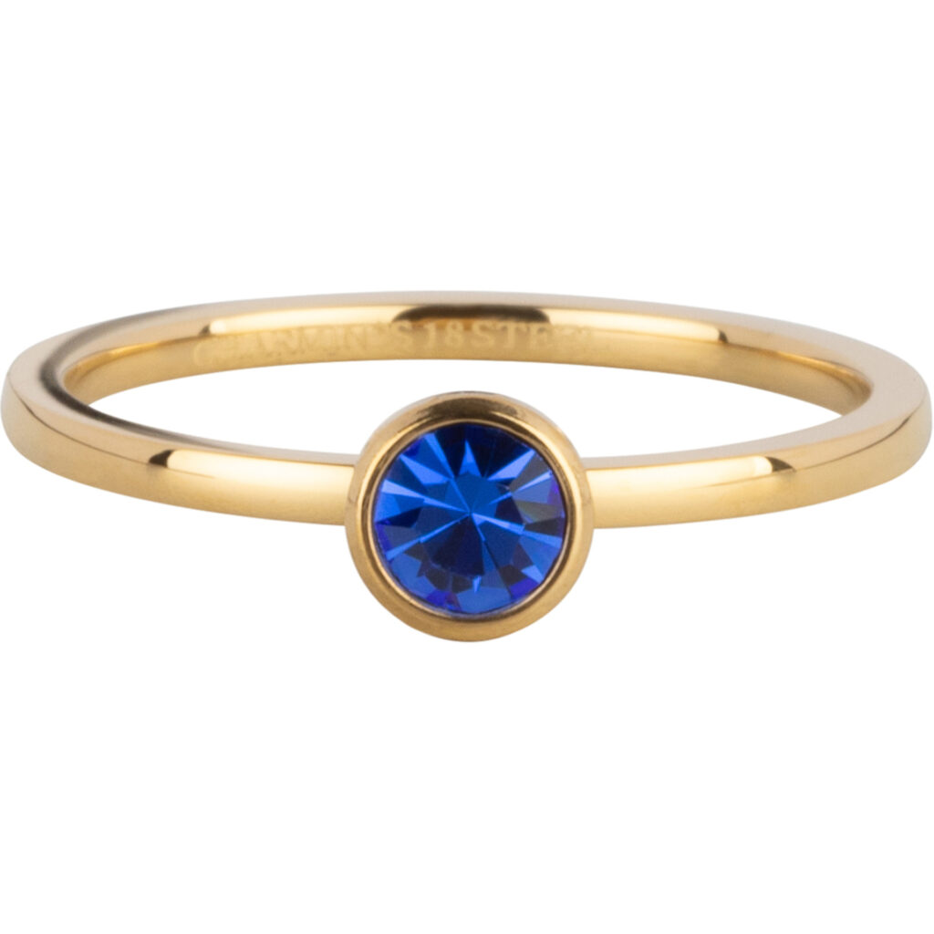 Stalen vintage ring “Charmin’s Goudkleurige Ring Birthstone September Donkerblauwe Kristal Staal Iconic R1604” van het fashion sieradenmerk Charmin’s.