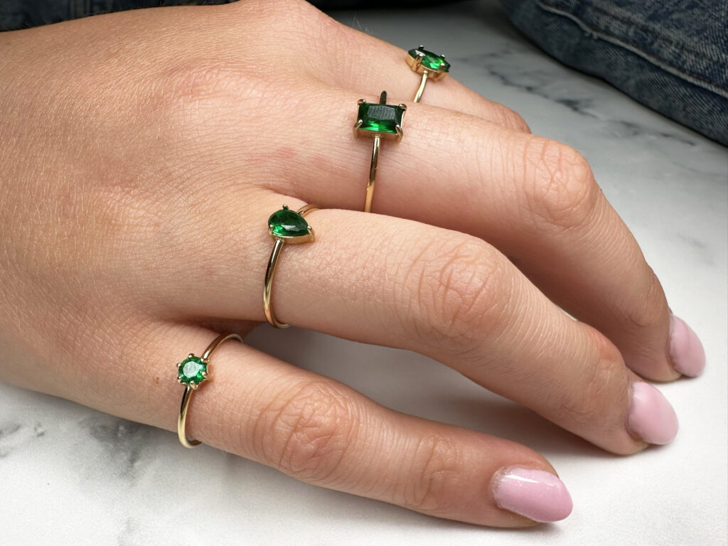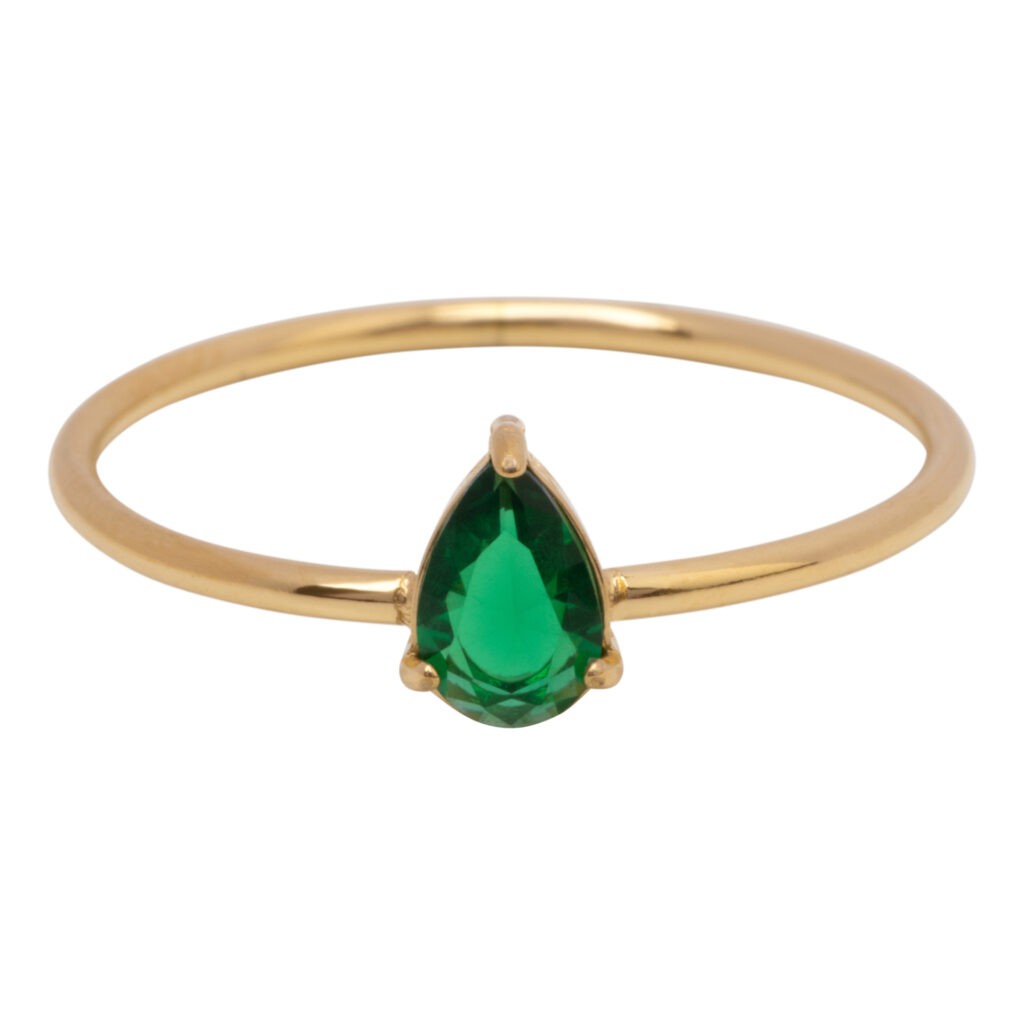 Het donkergroene kristal in druppelvorm geeft de ring een luxe en krachtige uitstraling. Perfect te combineren met zowel neutrale als warme tinten.