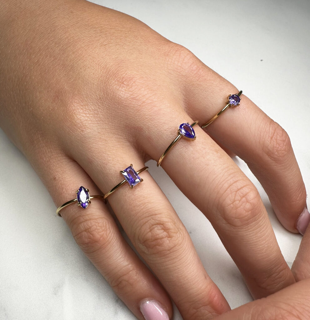 Het lila kristal geeft deze druppelring een zachte en vrouwelijke touch. Ideaal voor een verfijnde look met een vleugje kleur.