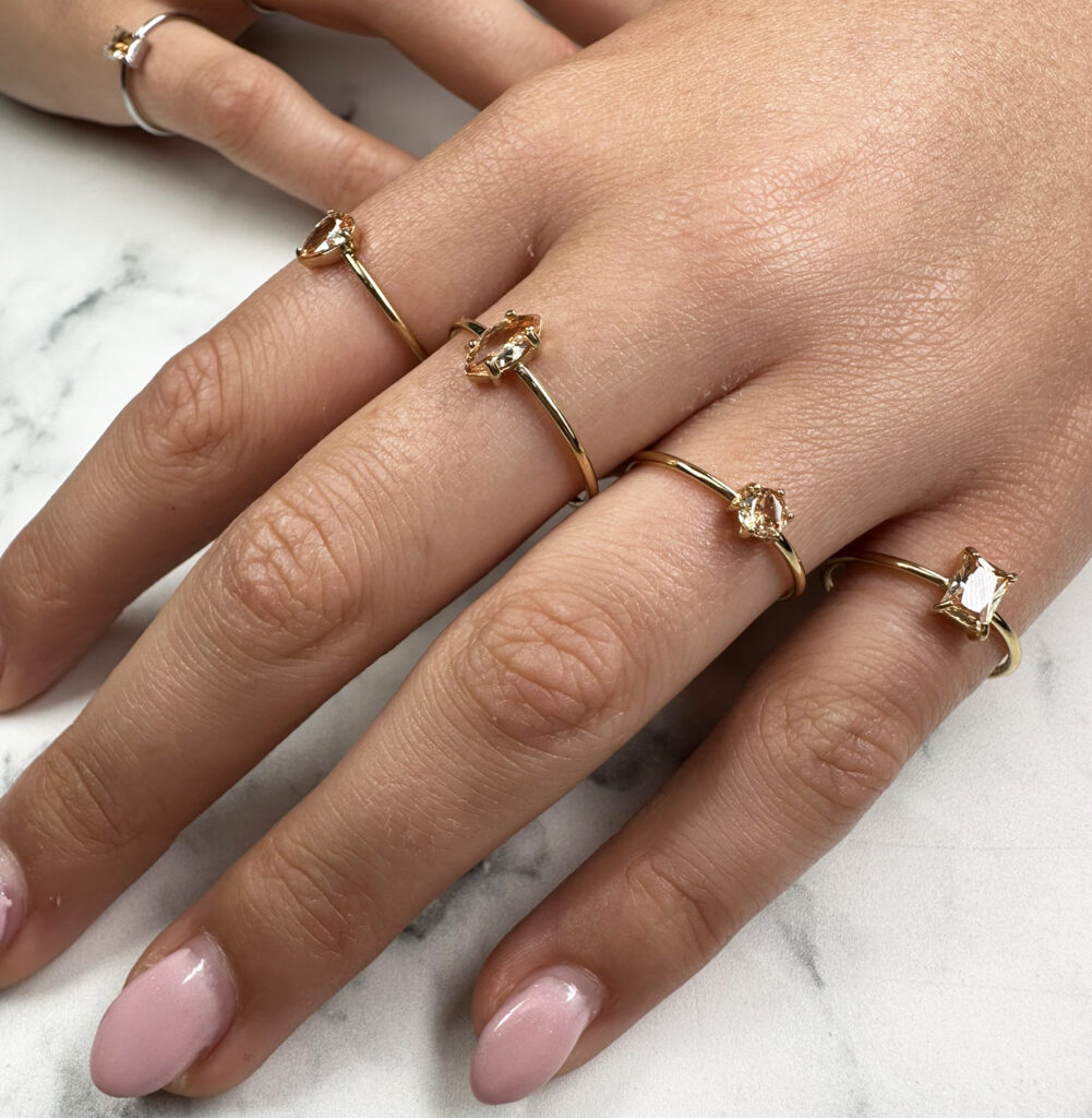 De zachte champagnetoon en het warme goud vormen samen een ring vol finesse. Een perfecte keuze voor subtiele elegantie.