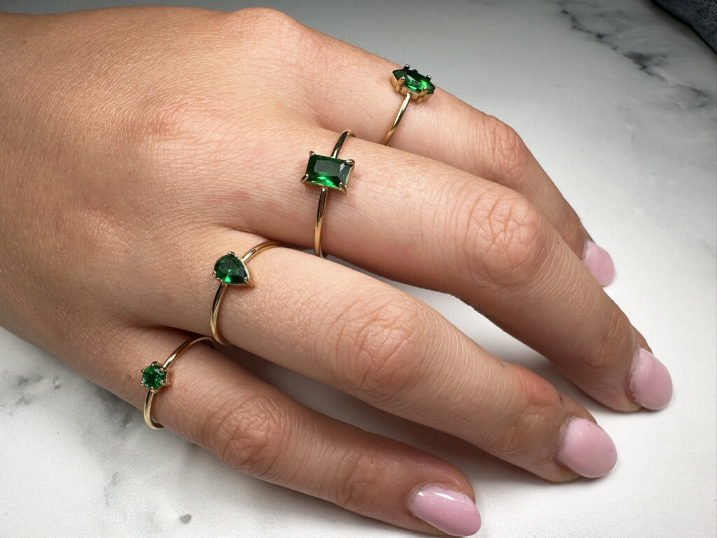 Stalen ring “Charmin’s Goudkleurige Ring Rechthoekig Donkergroen Steentje R1731 – Rustige Luxe” van het fashion sieradenmerk Charmin’s.
