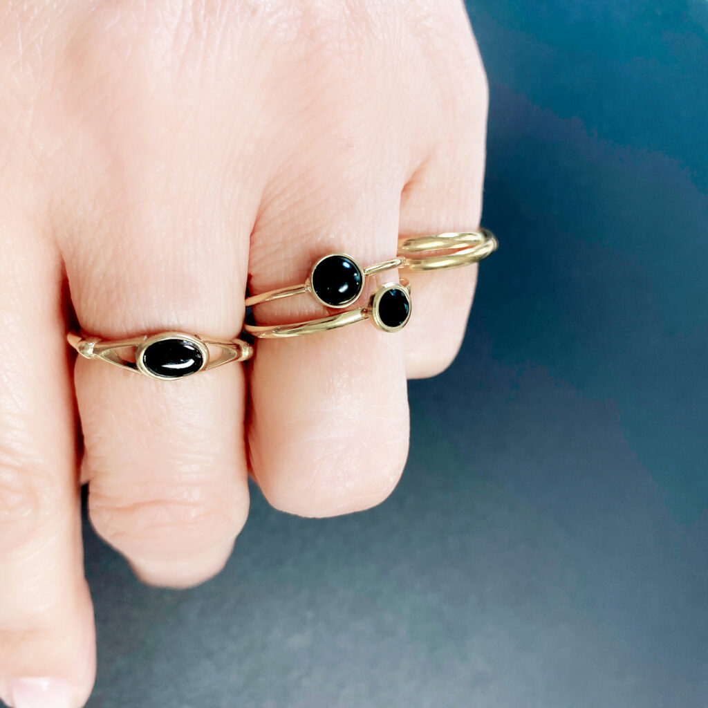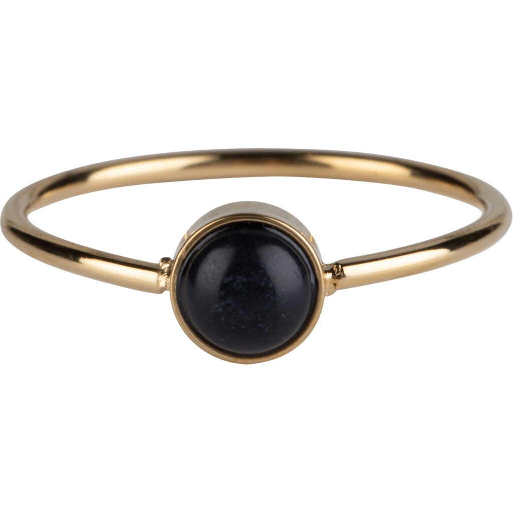 Stalen stapelring “Charmin’s Goudkleurige Ring Ronde Steen Zwarte Howliet Edelsteen 5mm Staal R1048” van het fashion sieradenmerk Charmin’s.