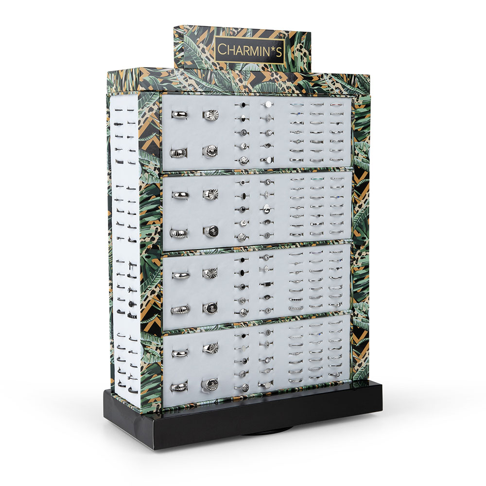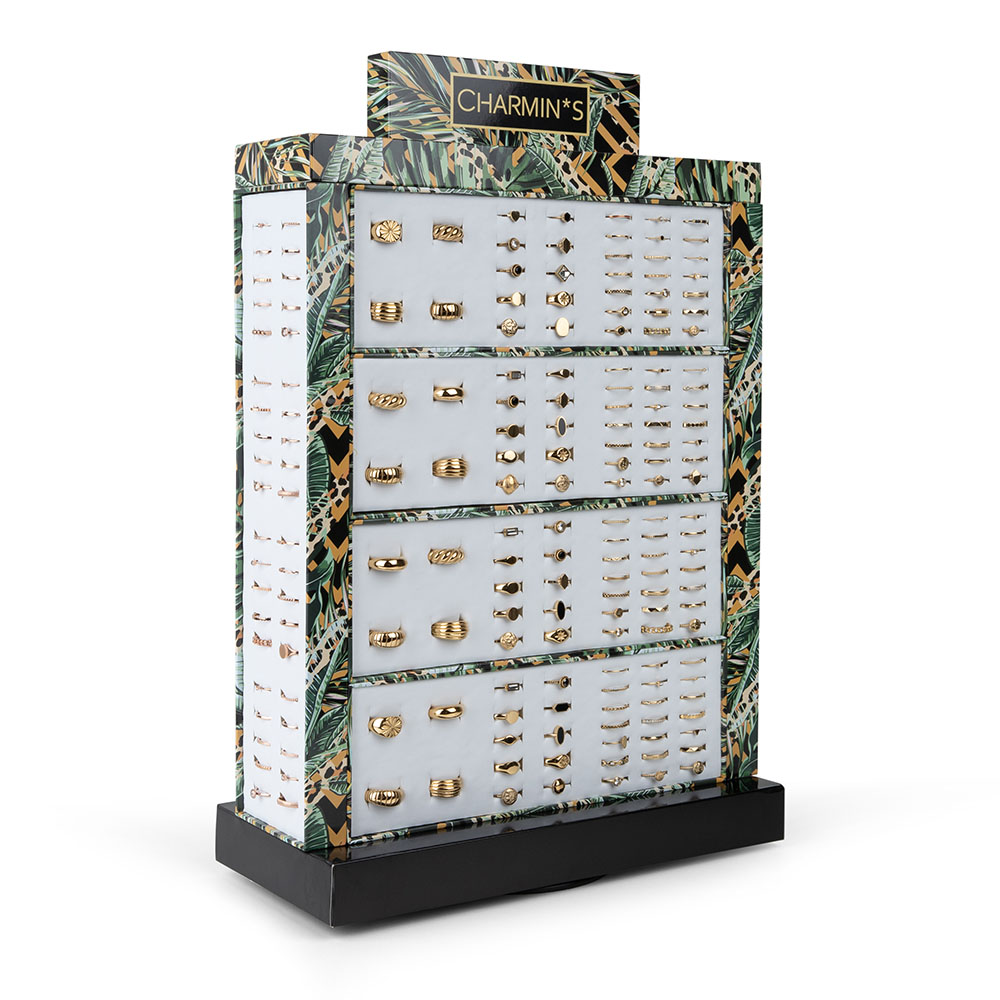 Presenteer je collectie met de luxe staande draaidisplay van Charmin’s, ontworpen om minimaal 360 ringen te tonen. Deze display is ideaal voor het overzichtelijk en aantrekkelijk presenteren van je ringenassortiment.