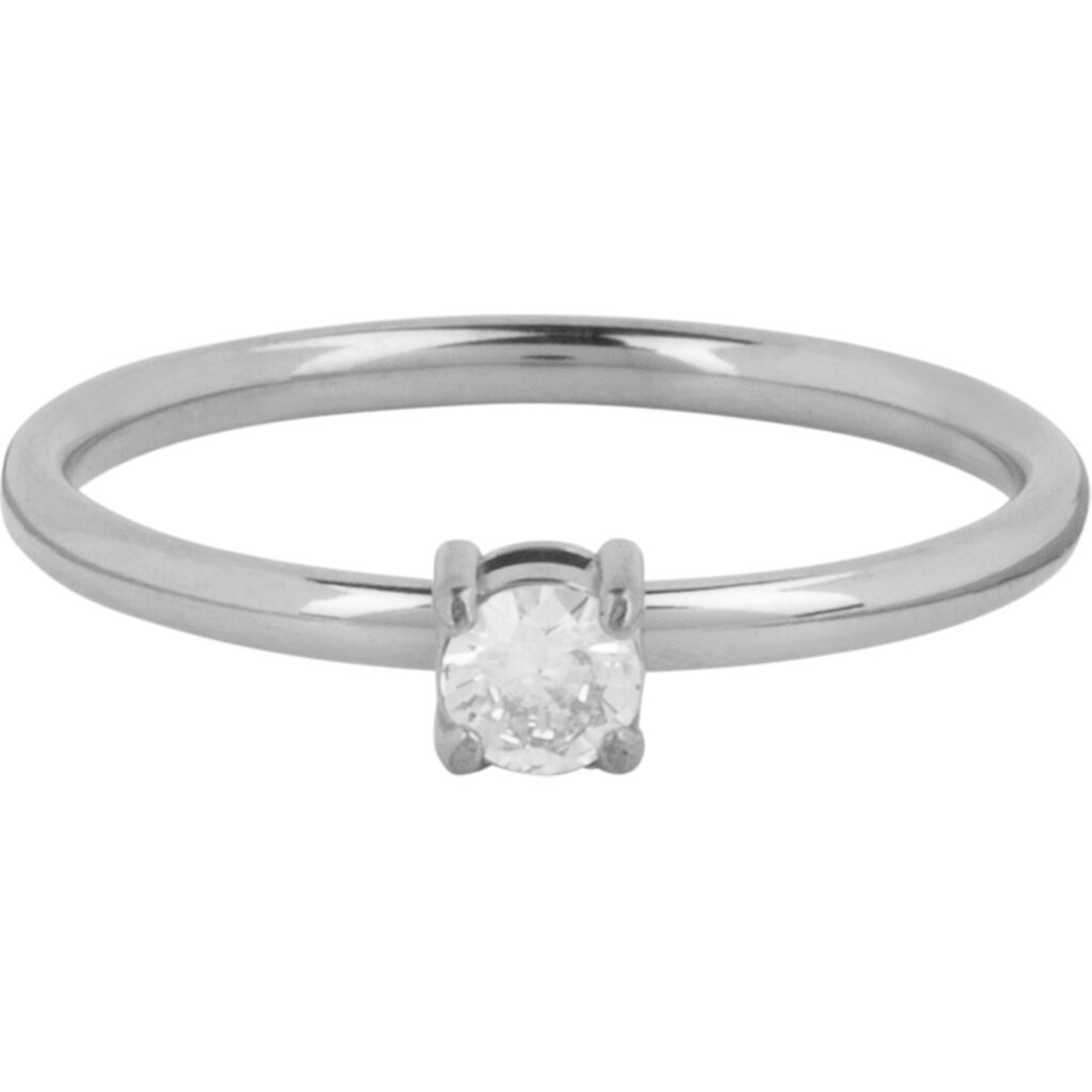 Stalen vintage ring “Charmin’s Klassieke Solitair 1mm Ring Witte Steen Staal R1422” van het fashion sieradenmerk Charmin’s.